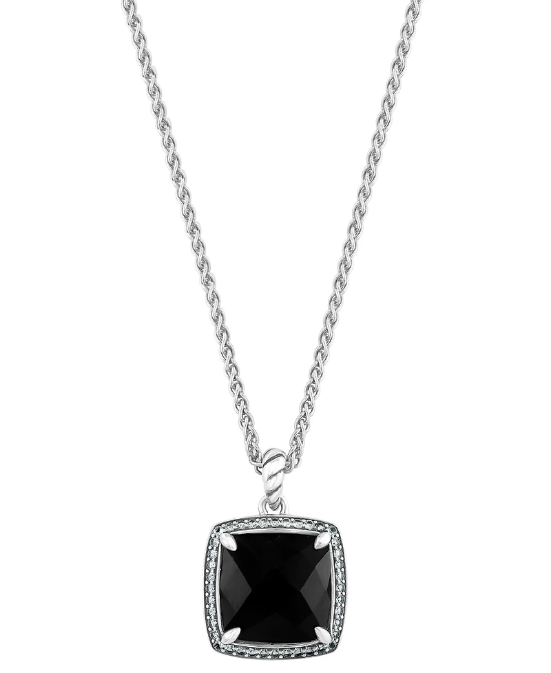 Effy Collection White Topaz (3/8 ct. t.w.) and Onyx Pendant Necklace in Sterling Silver