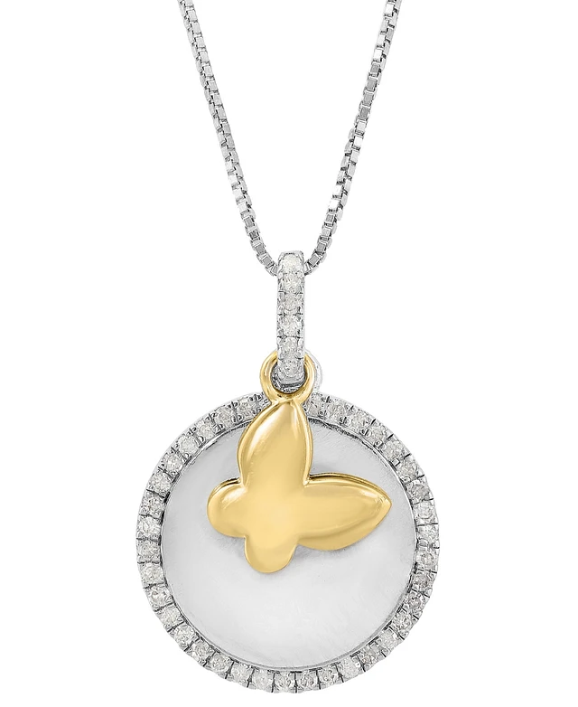 Effy Diamond Disc & Butterfly Two Charm 18" Pendant Necklace (1/4 ct. t.w.) in Sterling Silver & Gold-Plate