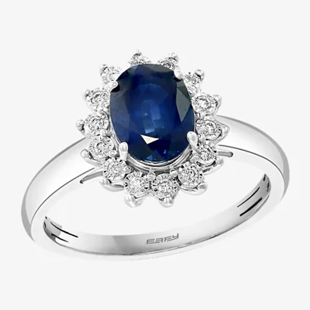 Effy Final Call Womens 1/10 CT. T.W. Diamond & Genuine Blue Sapphire 14K White Gold Cocktail Ring