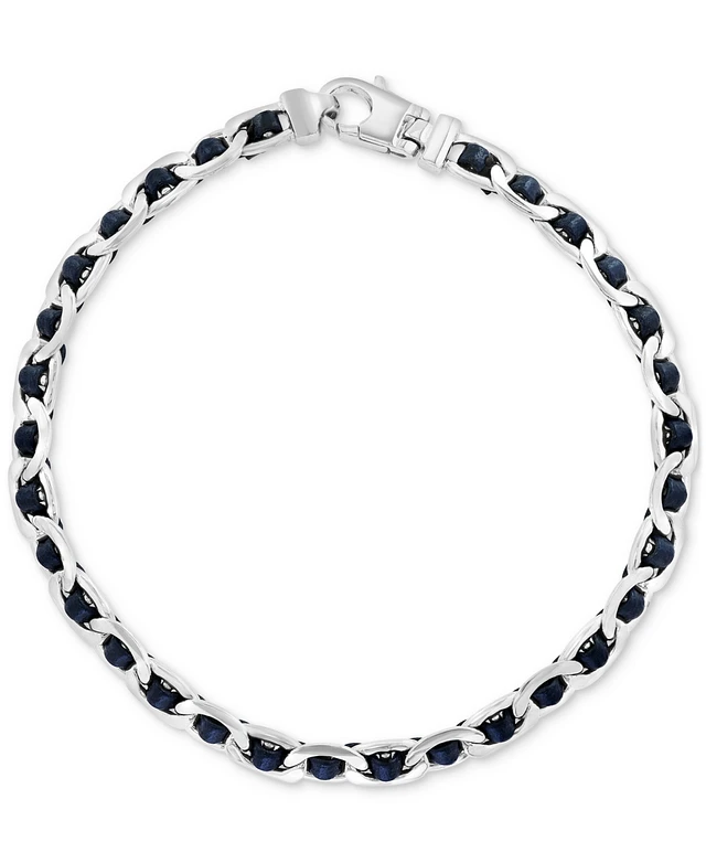 Effy Men's Blue Leather Woven Link Bracelet in Sterling Silver