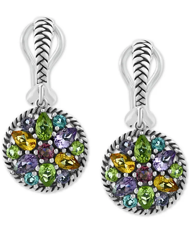 Effy Multi-Gemstone Cluster Drop Earrings (3-7/8 ct. t.w.) in Sterling Silver