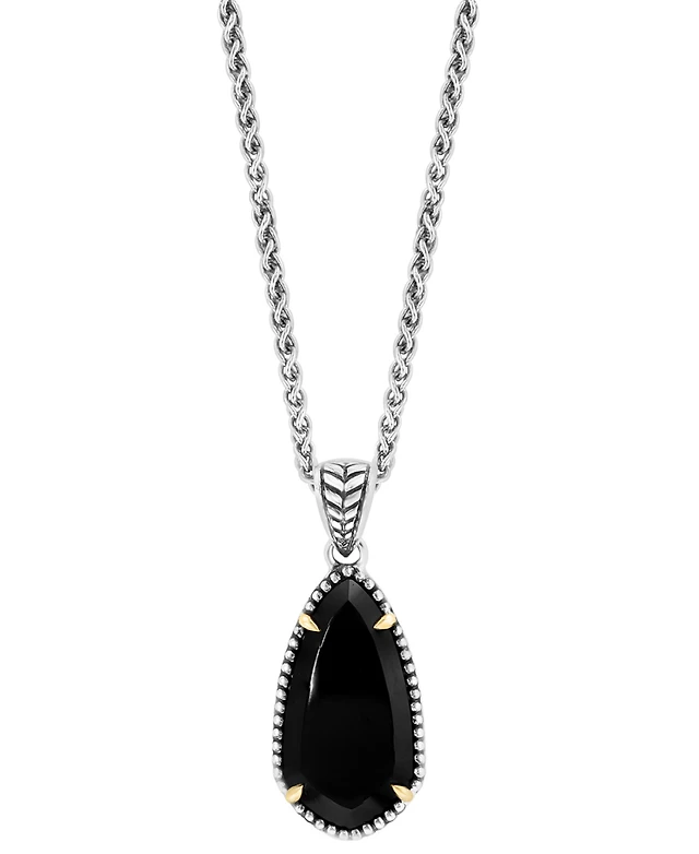 Effy Onyx Elongated Teardrop 18" Pendant Necklace in Sterling Silver & 18k Gold