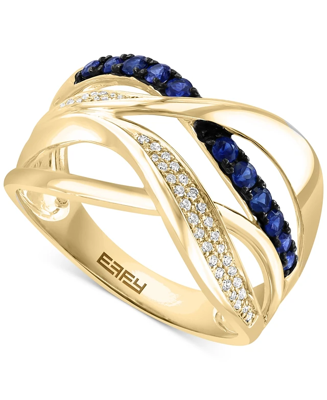 Effy Sapphire (1/3 ct. t.w.) & Diamond (1/10 ct. t.w.) Crossover Statement Ring in 14k Gold