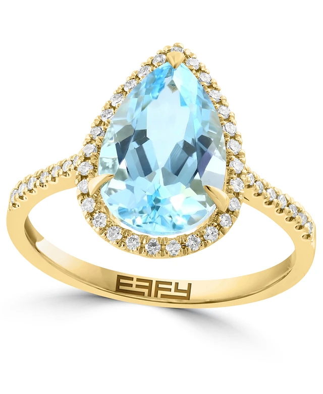 Effy Sky Blue Topaz (3-5/8 ct. t.w.) & Diamond (1/6 ct. t.w.) Pear Ring in 14k Gold