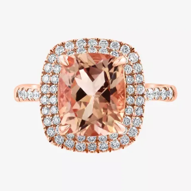 Effy Womens 1/2 CT. T.W. Diamond & Genuine Pink Morganite 14K Rose Gold Cocktail Ring