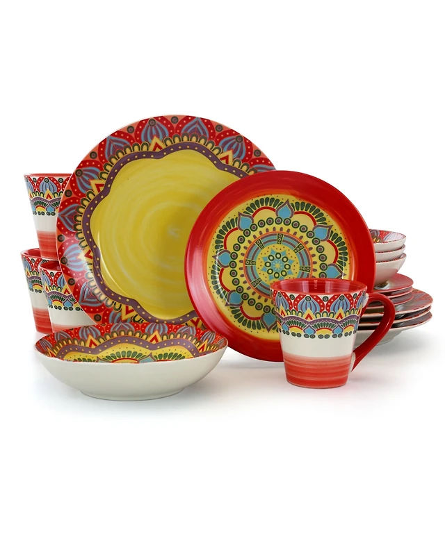 Elama Zen Mozaik Red 16 Pc. Dinnerware Set, Service for 4