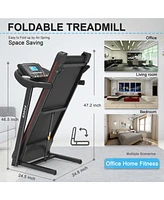 Electric Walking Running Treadmill Machine 5" Lcd Screen 250 Lb Capacity Bluetooth Music