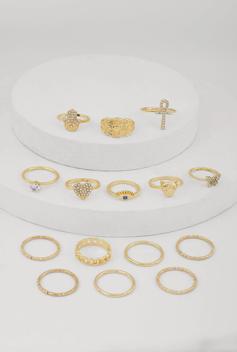 Elegant Metallic Cubic Zirconia Assorted Rings Set of 15