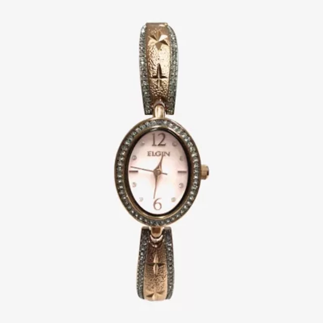 Elgin Womens Crystal Accent Gold Tone Bracelet Watch Eg180011st