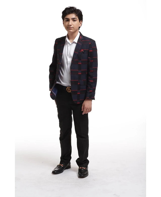 Elie Balleh Boys Blue Slim Fit Plaid Blazer