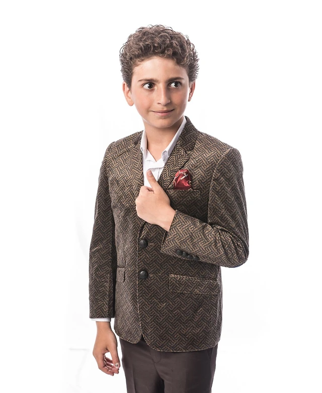 Elie Balleh Toddler Camel Slim Fit Printed Velvet Blazer