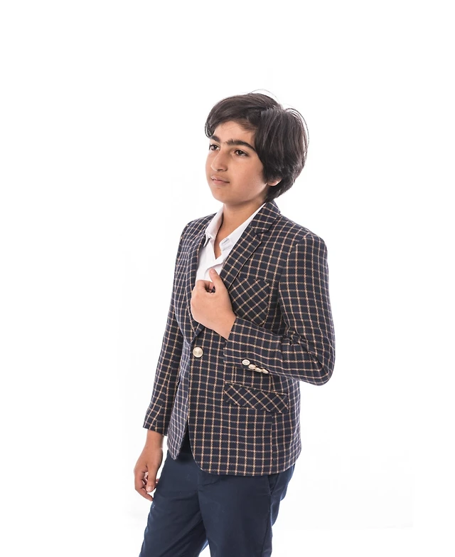Elie Balleh Boys Navy Slim Fit Classic Plaid Blazer