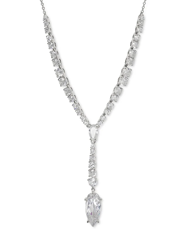 Eliot Danori Rhodium-Plated Pear-Shape Cubic Zirconia Lariat Necklace, 16" + 2" extender, Created for Macy's