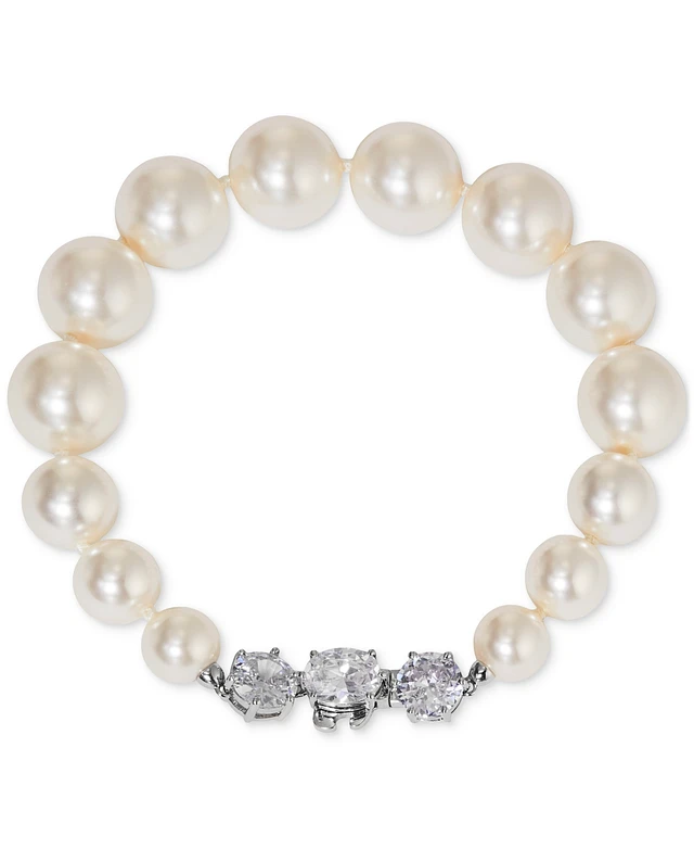 Eliot Danori Silver-Tone Cubic Zirconia & Imitation Pearl Flex Bracelet, Exclusively at Macy's