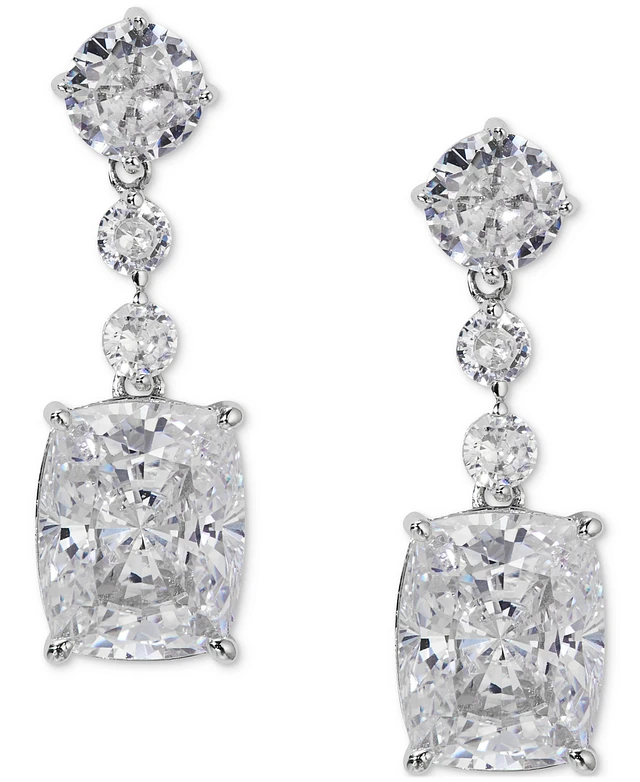 Eliot Danori Silver-Tone Cushion Cubic Zirconia Drop Earrings, Created for Macy's