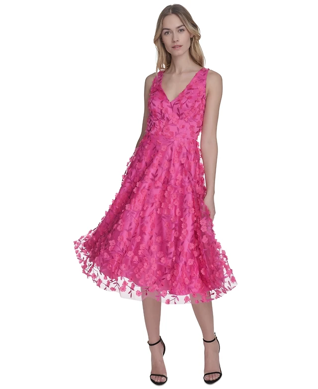 Eliza J 3D-Floral Fit & Flare Midi Dress