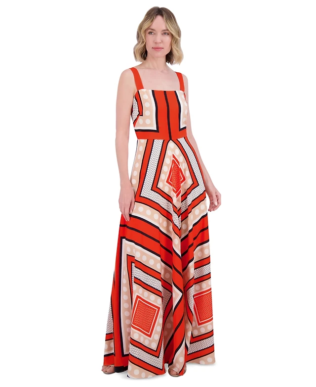 Eliza J Petite Printed Square-Neck Sleeveless Dress