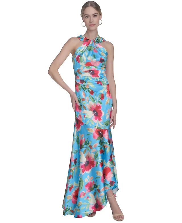 Eliza J Women's Floral-Print Twist-Front Halter Gown