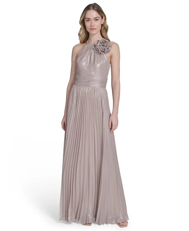 Eliza J Women's Metallic-Print Pleated Halter Gown