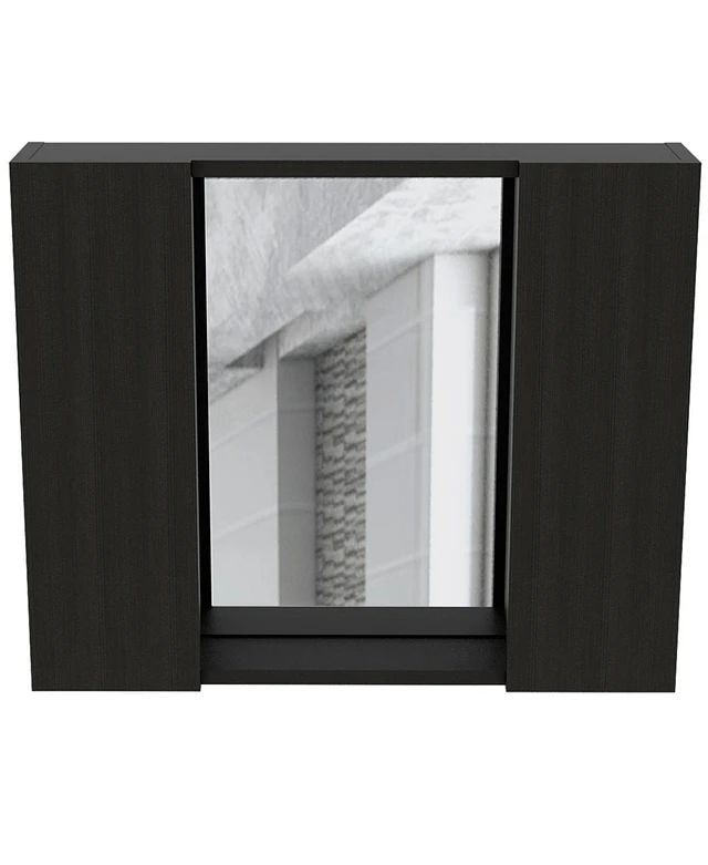 Huslia Medicine Cabinet with 2 Shelves and Doors, Black Wengue