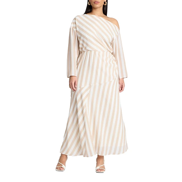 Eloquii Women's One Shoulder Stripe Asym Dress