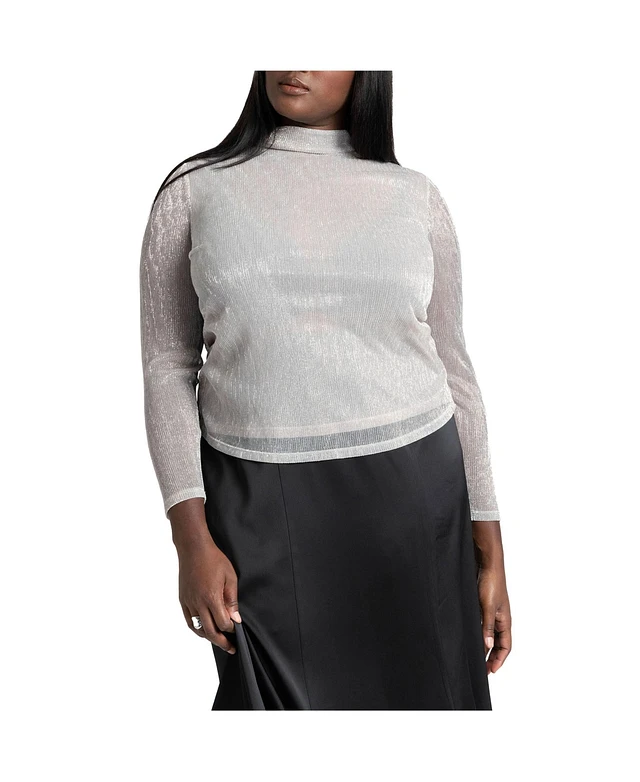 Eloquii Women's Plus Size Shine Textured Turtleneck Top