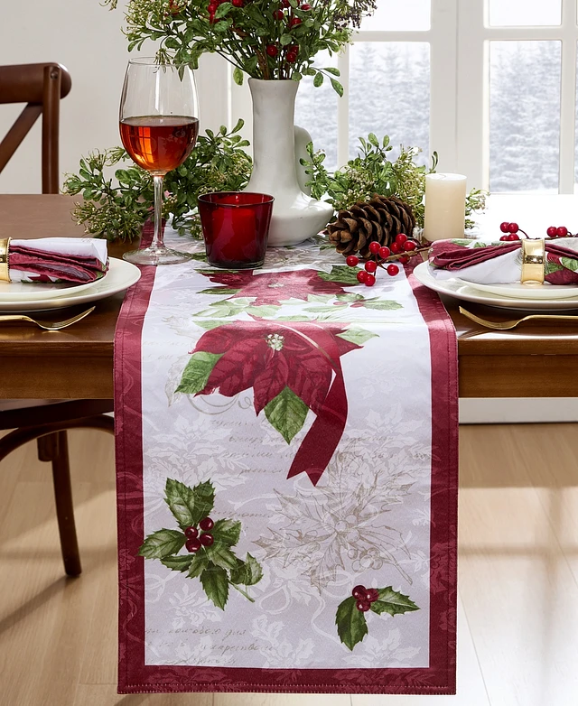 Elrene Clarette Poinsettia Holiday Fabric Table Runner, 70"x 14"