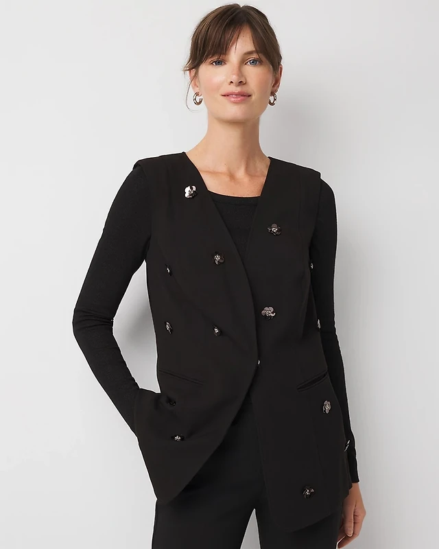Womens Solid Crepe Knit Button Front Blazer Vest,