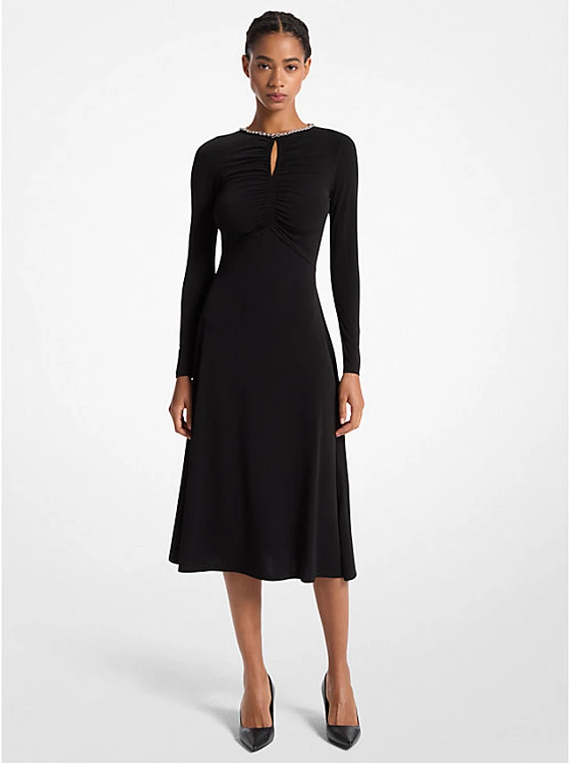 Sequined Stretch Matte Jersey Turtleneck Dress