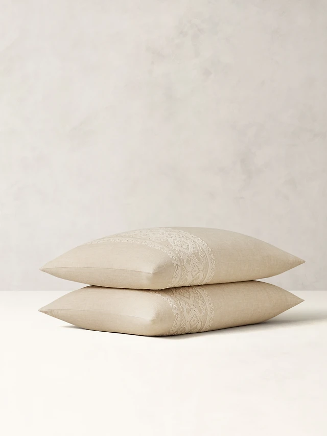 Embroidered Linen-Cotton Sham Set
