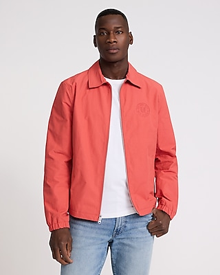A timeless zip jacket compete with buttoned hand pockets, a point collar, and an embroidered NYC chest graphic.