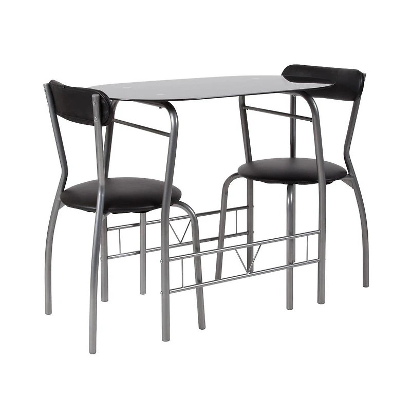 Emma+Oliver 3 Piece Space-Saver Glass Bistro Set With Vinyl Padded Chairs