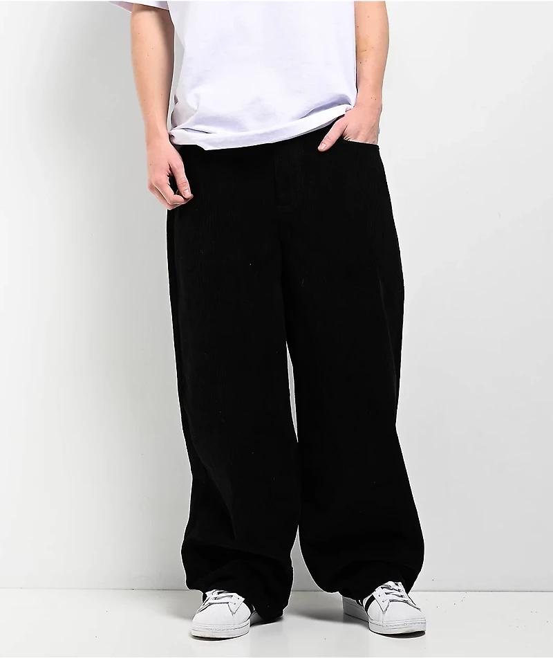 The next tier in flowy comfort, Empyre welcomes black pants in a durable corduroy construction with an ultra-wide, oversized fit. Adorned by a small graffiti logo embroidered on the coin pocket, the 100% cotton bottoms provide added support within us