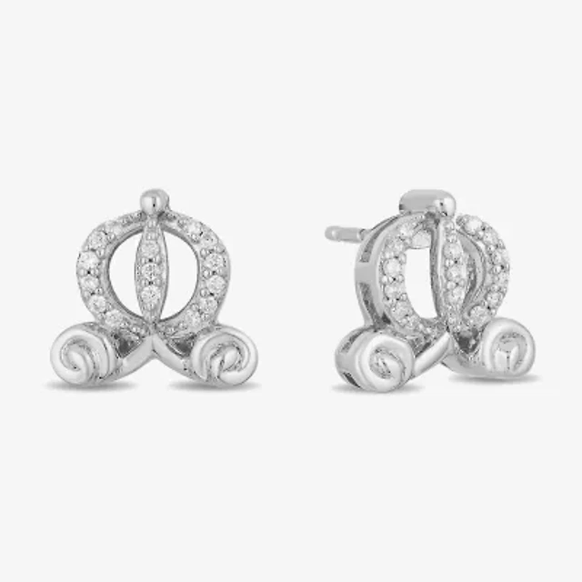 Enchanted Disney Fine Jewelry Diamond Accent Natural White Diamond Accent Sterling Silver 9.5mm Cinderella Princess Stud Earrings