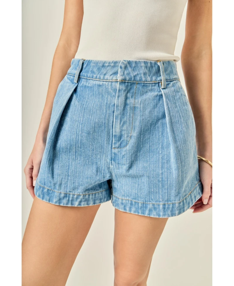 Upgrade your summer wardrobe with our must-have High Waisted Denim Shorts! These shorts feature a flattering mini length, perfect for showing off those sun-kissed legs. With a front zipper closure and hook and bar for a secure fit, these shorts are both functional and stylish. The tuck detail adds a touch of texture and dimension, creating a unique look. Made from high-quality denim, these shorts will become your go-to for every summer occasion. Pair them with a crop top and sandals for a chic and casual look. Shop now and elevate your denim game!
