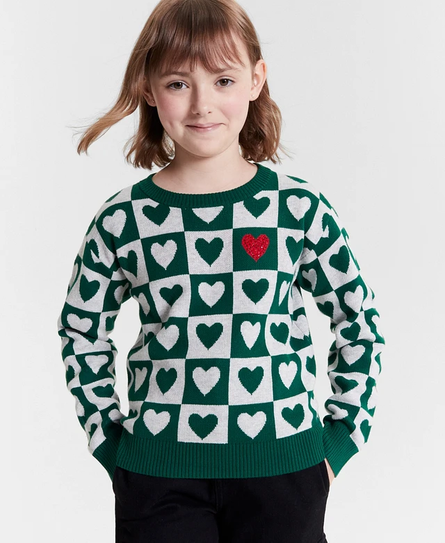 Epic Threads Little & Big Girls Checkerboard Heart Sweater, Created for Macy's
