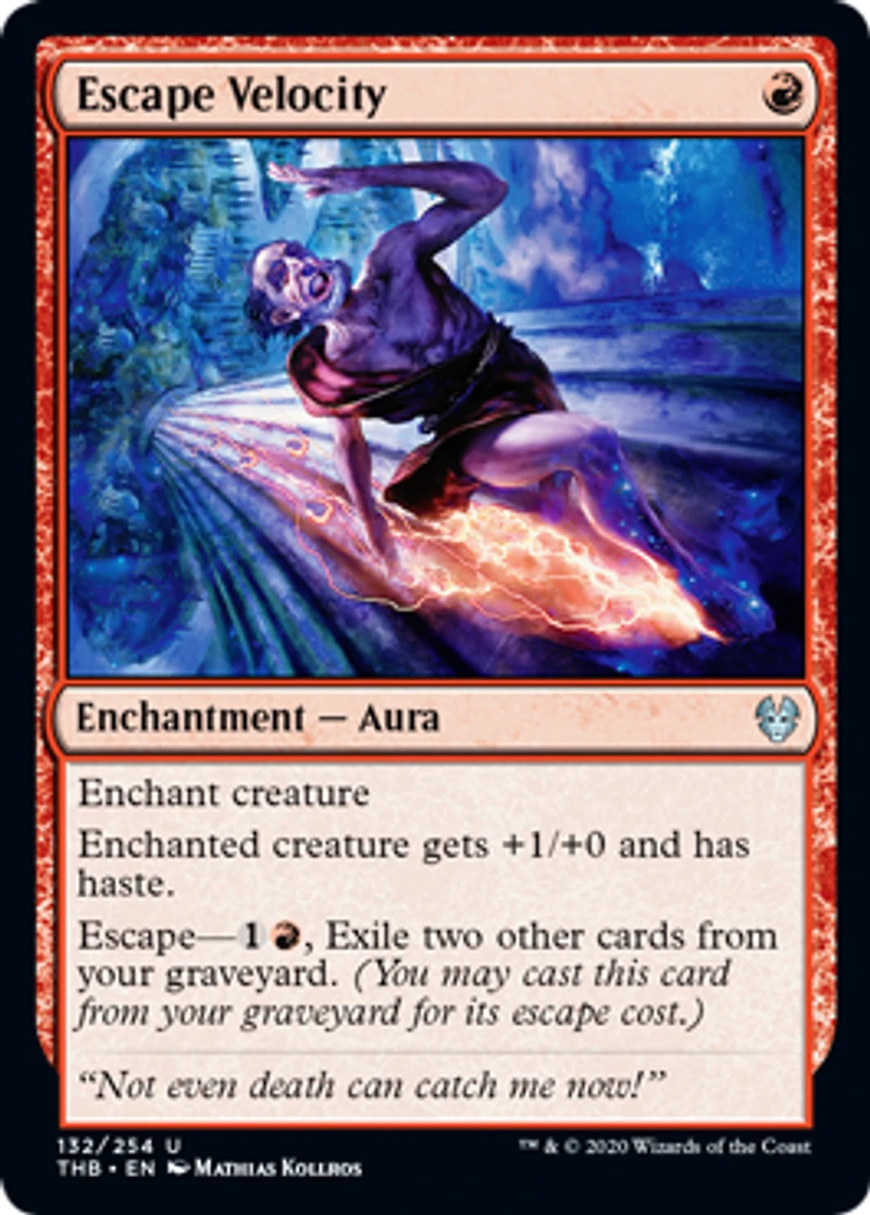 Enchant CreatureEnchanted creature gets +1/+0 and has haste.Escape1R