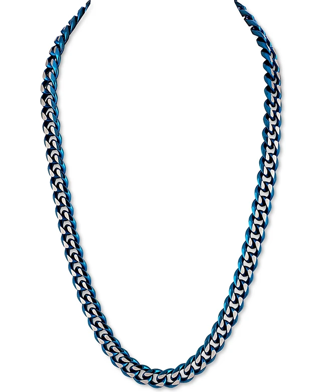 Esquire Men's Jewelry Fox Chain Necklace in Stainless Steel and Blue Ion-Plate, Created for Macy's