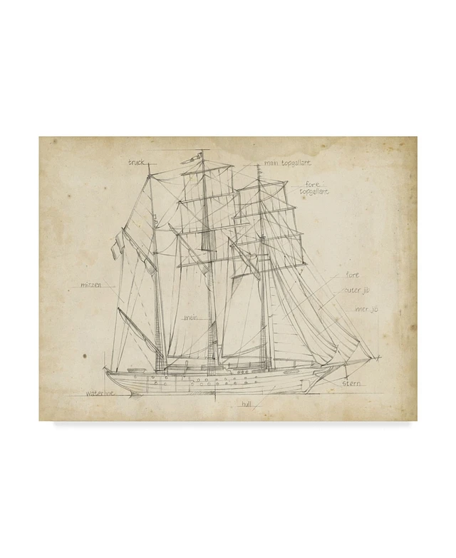 Ethan Harper Sailboat Blueprint I Canvas Art - 20" x 25"