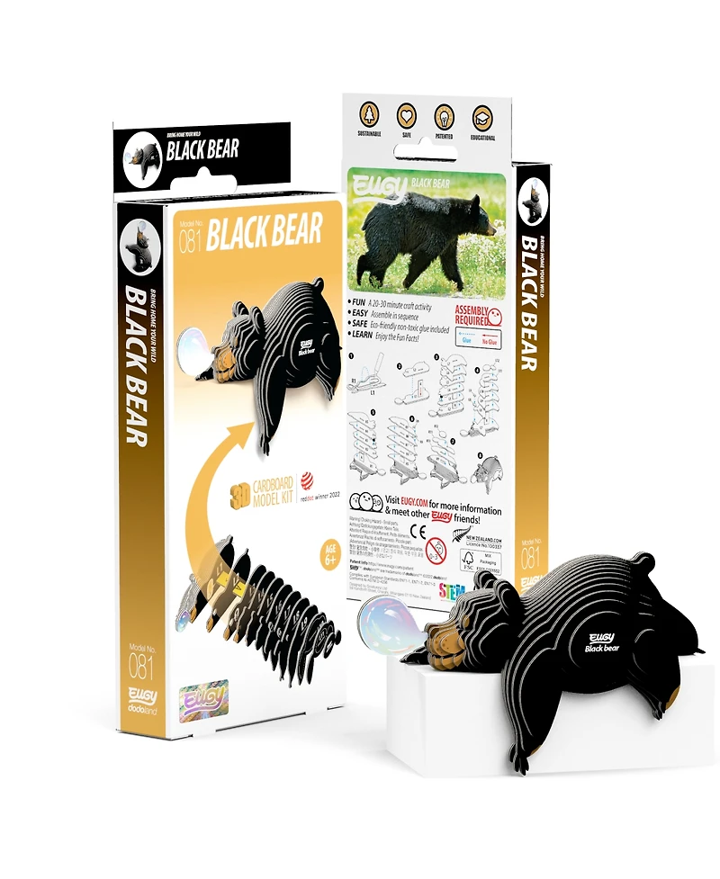 Eugy - a super-fun 3D puzzle that can be assembled in 10 to 20 minutes! Assemble this bubble-blowing Black Bear puzzle and experience the magic of Eugy!