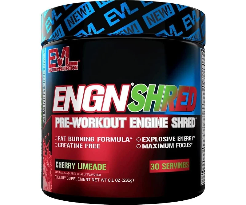 Elevate your training with Evl s Engn Shred, a high-intensity pre-workout and fat-burning formula designed to boost energy, focus, and metabolism. Featuring Beta-Alanine, Agmatine, L-Carnitine, Yohimbe, and premium thermogenic blends, Engn Shred helps power your workouts while supporting fat loss and endurance. Enjoy clean energy, stronger pumps, and enhanced performance from ingredients engineered for maximum results.