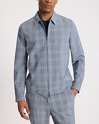 Extra Slim Blue Plaid Wool-Blend Washable Modern Tech Zip Suit Jacket in San Juan, PR