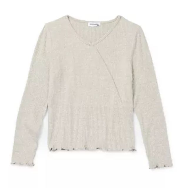 Eyeshadow Little & Big Girls V Neck Long Sleeve T-Shirt