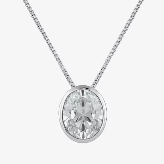 (F / Si2) Womens 2 CT. Lab Grown White Diamond 10K White Gold Oval 18 Inch Pendant Necklace