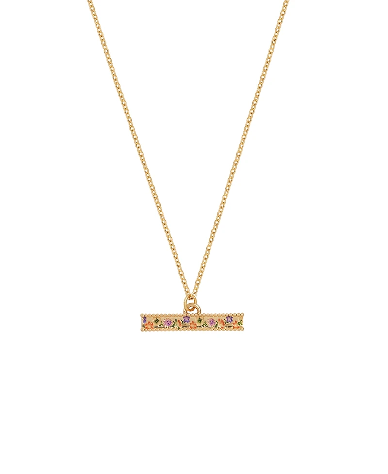 A striking, standout pendant, this delicate T-Bar Necklace ensures you carry the bouquet of soft, romantic flowers it's adorned with close to your heart. Designed to represent the soulful beauty of the highlands, wear alone or layer with other pieces for a free spirited feel.