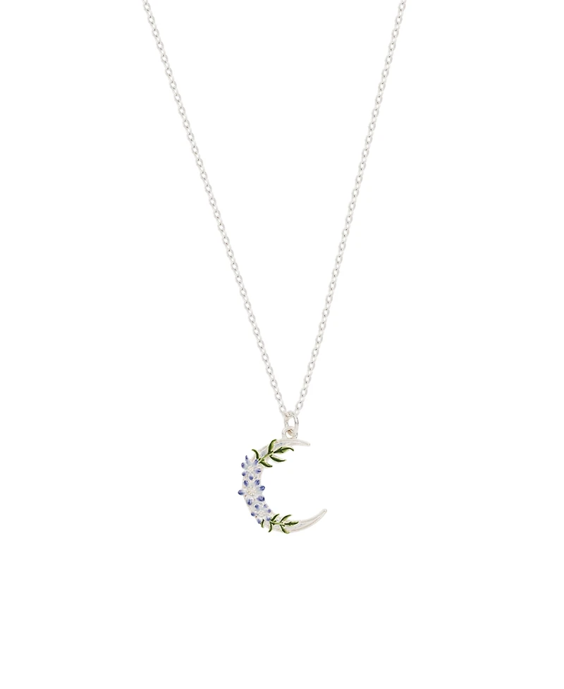 After dark is when the nightshade flower reveals its true beauty, reflected in these delicate Nightshade Moon Pendant Necklace. Carefully hand-painted onto the enamel, the florals sit neatly atop the crescent moon that has been crafted from worn sterling silver-plated brass. Magical and mystical, if you like your jewellery to have a vintage vibe, you'll want to wear this celestial charm from dawn til dusk.
