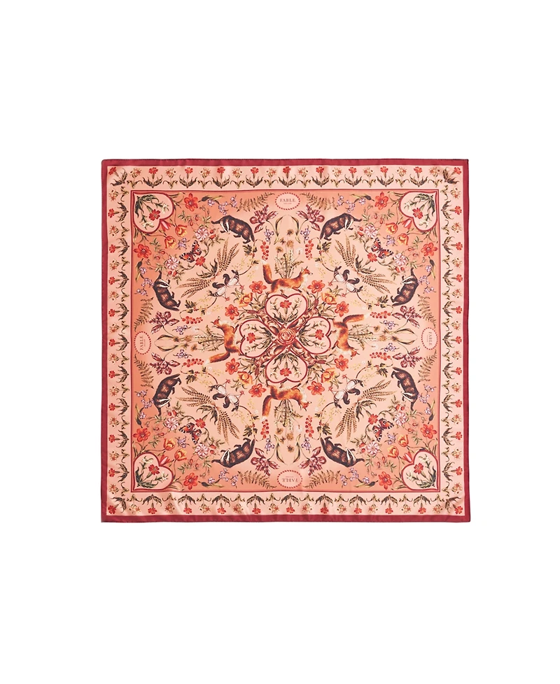 Fable England Women's Folksy Fox Tales Peach Square Scarf