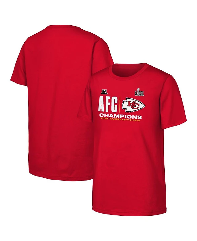 Fanatics Big Boys and Girls Red Kansas City Chiefs 2024 Afc Champions Hail Mary T-Shirt