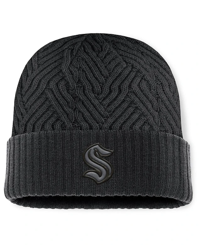 Men's Fanatics Charcoal Seattle Kraken Authentic Pro Home Ice Cuffed Knit Hat with Pom