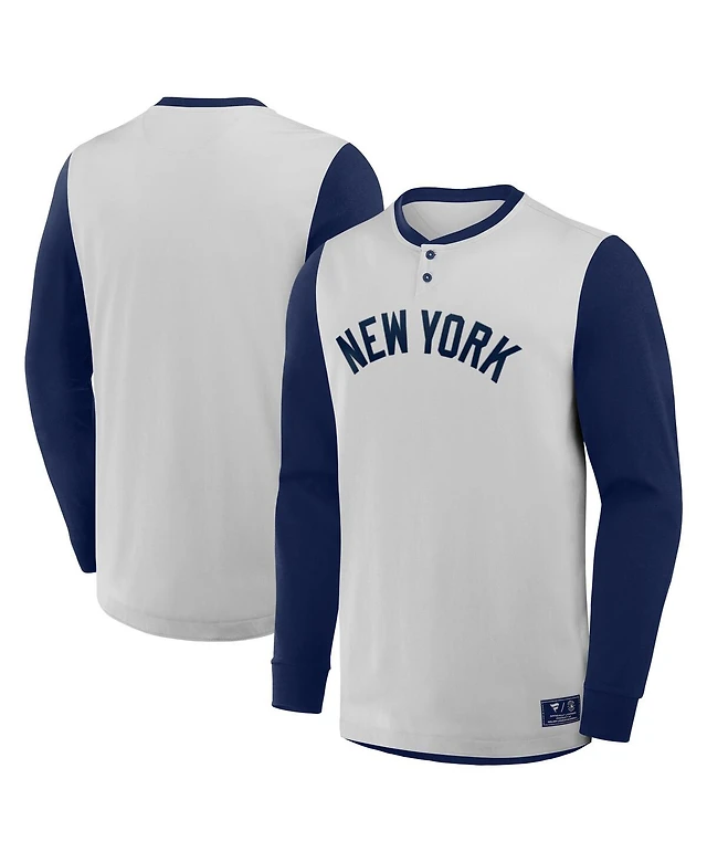 Fanatics Men's Gray/Navy New York Yankees Clubhouse Long Sleeve Henley Shirt